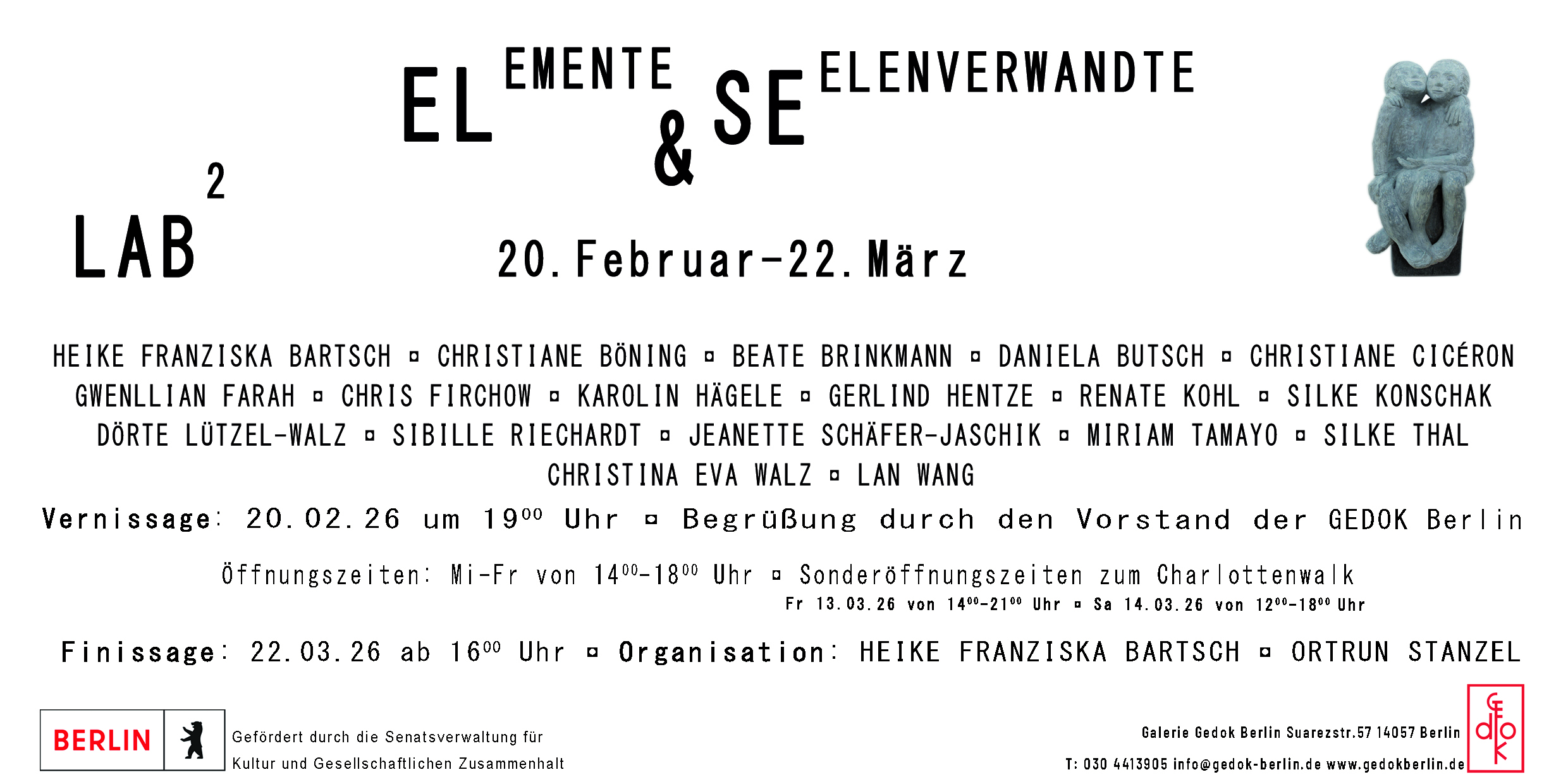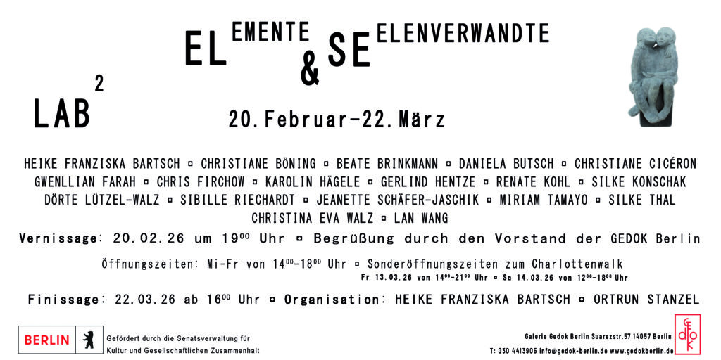 Gruppenausstellung mit Daniela Butsch, Christiane Cicéron, Evelin Daus, Skadi Engeln, Chris Firchow, Pia Berta Fischer, Andrea J. Grote, Katrin Grote-Baker, Liza Hirst, Agnes Immelmann, Ilka Schneider, Miriam Tomayo, Gisela Weimann